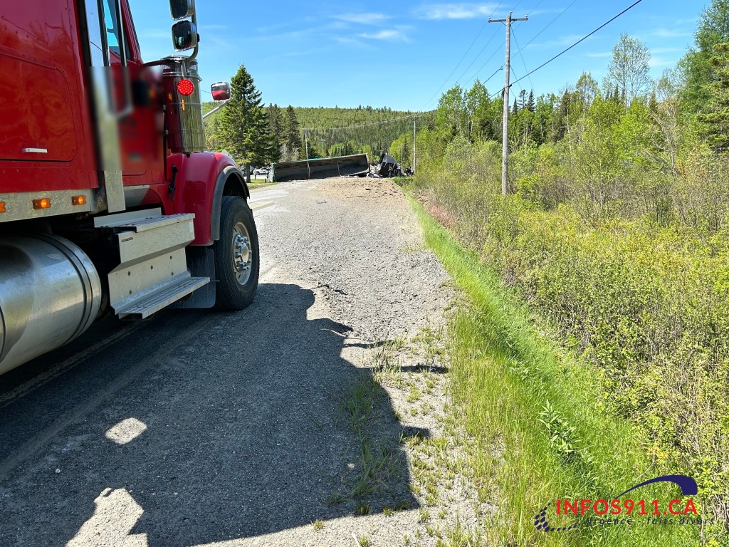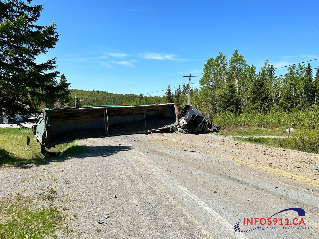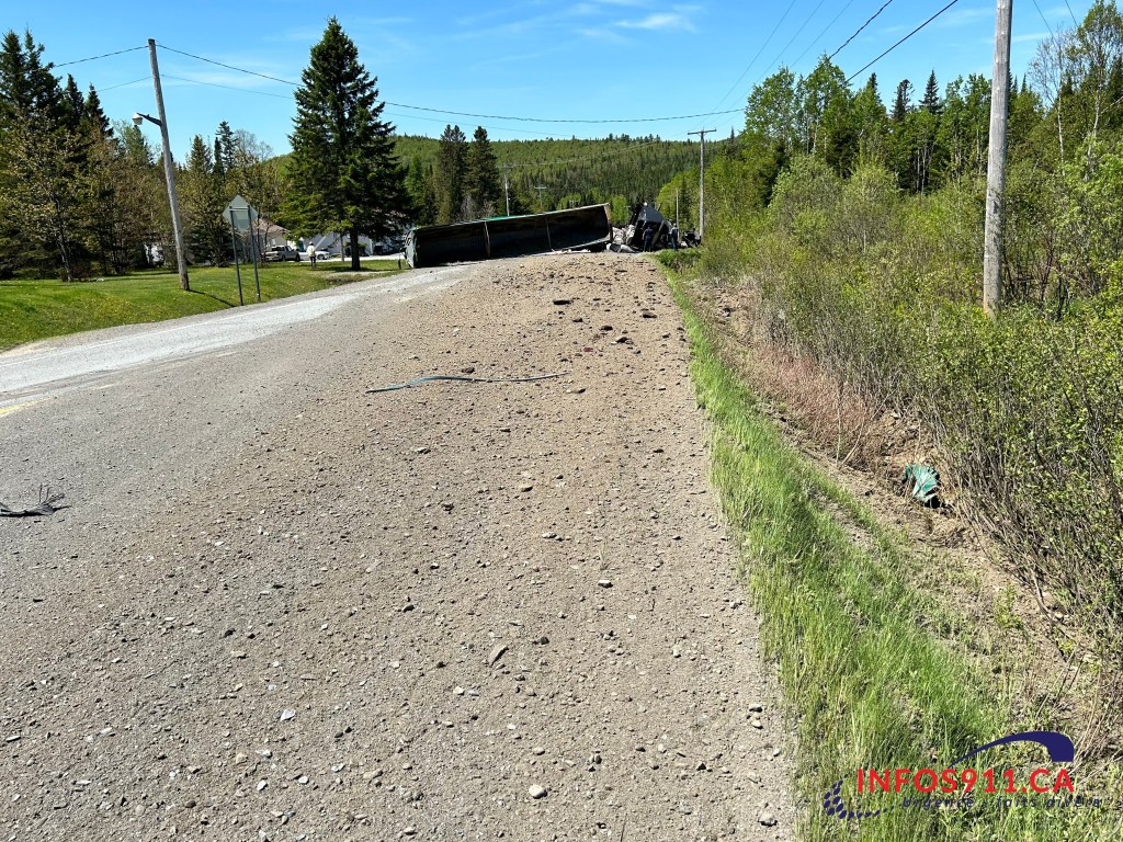 En fin d’avant-midi, la Sûreté du Québec et Ambulance Cambi ont dû intervenir suite au renversement d’un semi-remorque transportant de la terre sur la route 267 à Adstock, secteur St-Daniel, tout juste en face de la boucherie Chouinard.