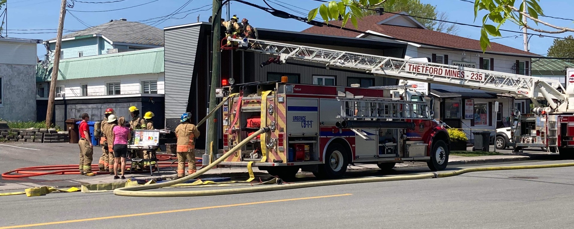 En milieu d’après-midi, vers 14h20, le service incendie de Thetford Mines a été appelé pour un feu de paillis sur la rue Labbé, sur le terrain de l’ancien poste de radio, transformé en commerce et en logement.