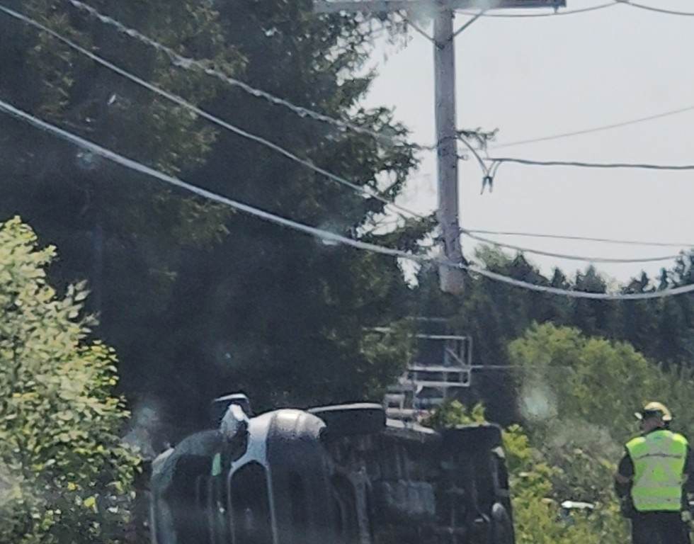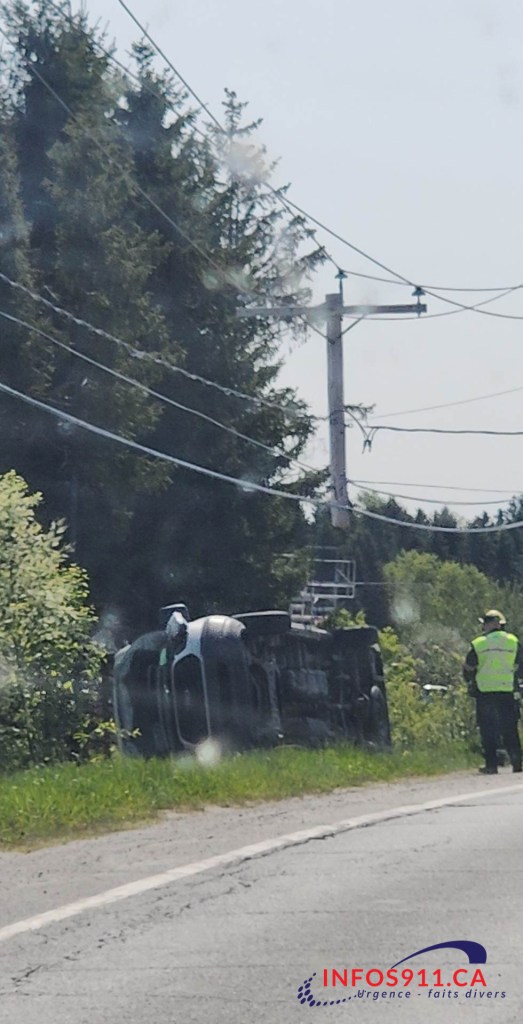 Nous ignorons la cause de cette embardée, mais la camionnette a terminée sa course sur le côté après avoir sectionné un poteau.