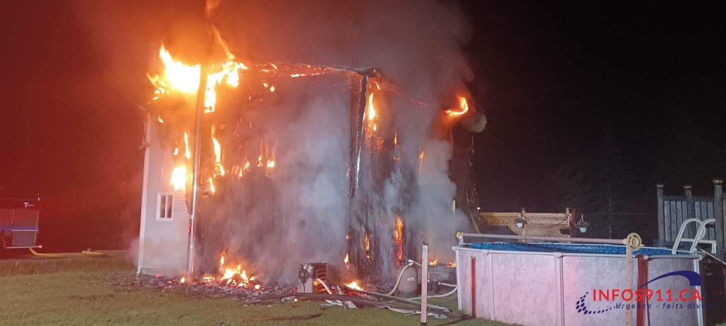 À l’arrivé des pompiers, les flammes font rages. Une recherche a été entreprise rapidement à l’intérieur pour s’assurer qu’il n’y avait aucun occupant.