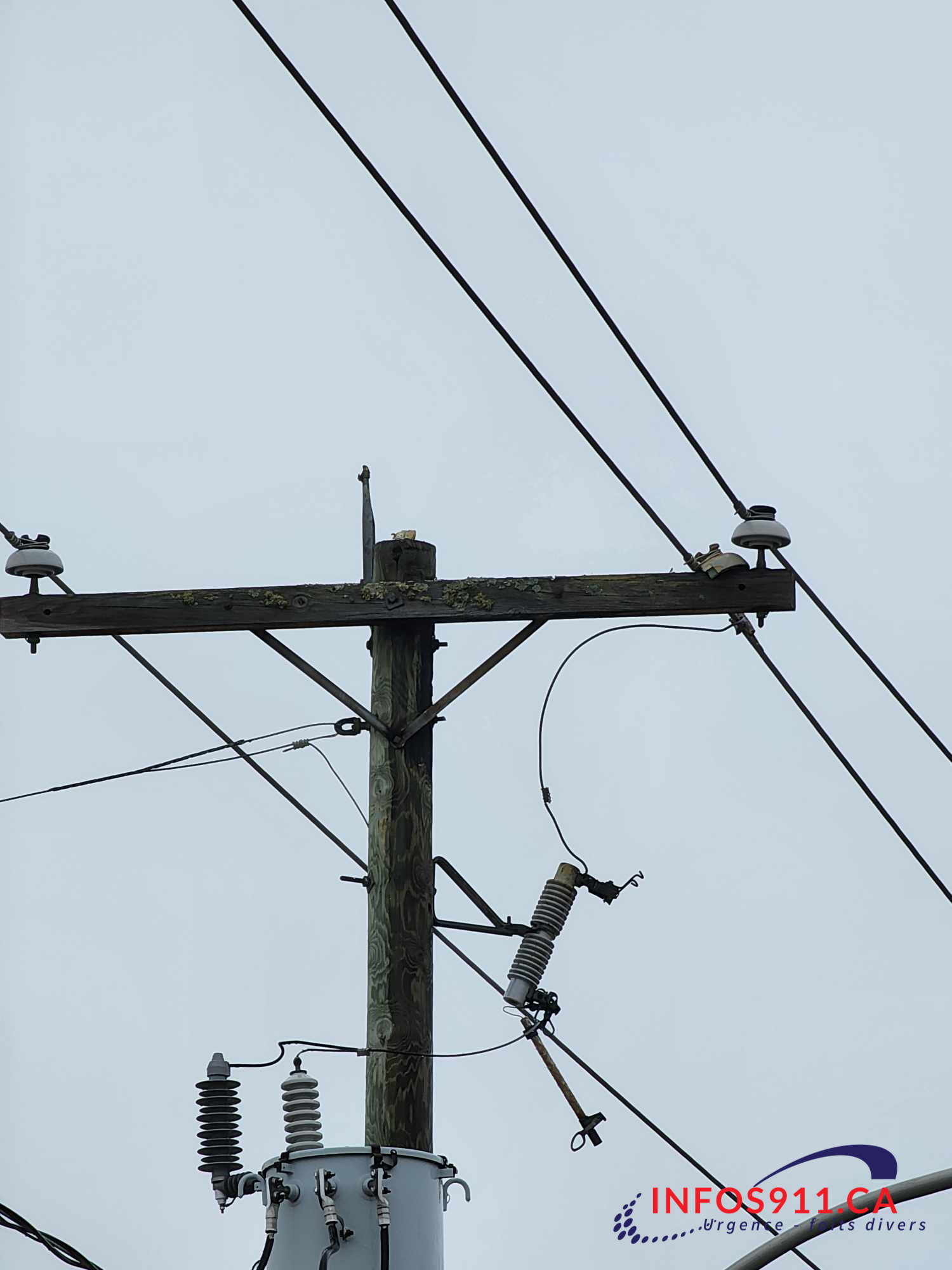 La porcelaine au niveau des fils de moyenne tension s’est brisée. ce qui a causé un cout-circuit. Hydro-Québec a été appelé sur place.