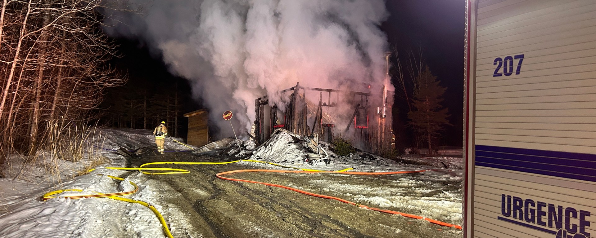 Nous ignorons pour le moment la cause de l’incendie, mais le bâtiment est une perte totale.