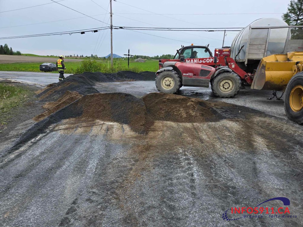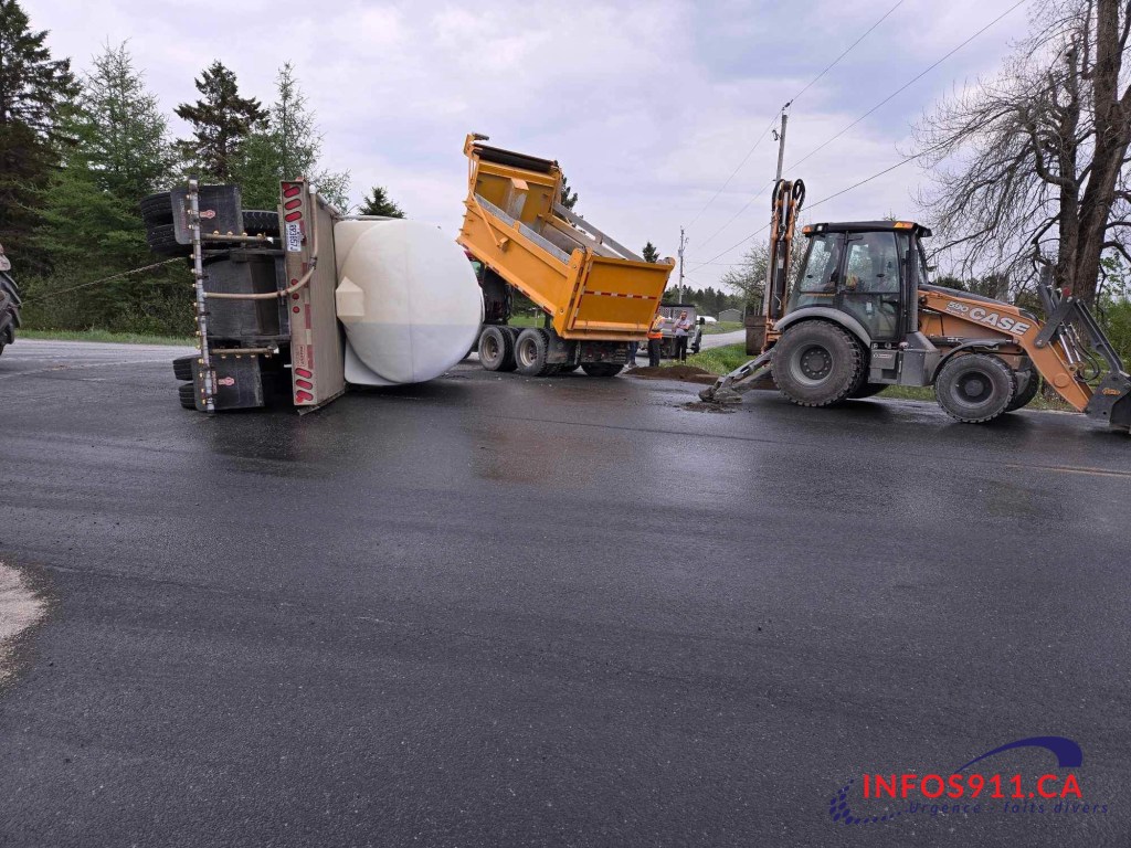 En milieu d’après-midi, une remorque citerne contenant du calcium liquide s’est renversée à l’intersection de la route 267 et du 9e rang à Adstock, entrainant le déversement du produit.